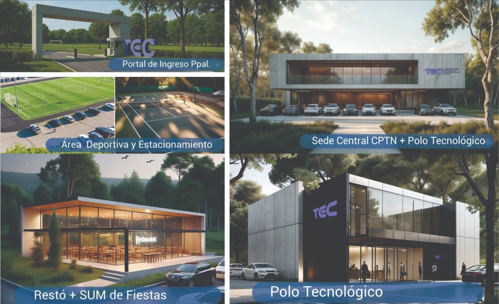 Uno de los hitos más relevantes del proyecto es la construcción de la nueva Sede Central del CPTN, concebida como un edificio institucional de dos niveles que concentrará dependencias administrativas, servicios y un auditorio para eventos, conferencias y actividades académicas. Su ubicación estratégica dentro del predio permitirá una visual integral del conjunto y una adecuada convivencia con el resto de los usos.